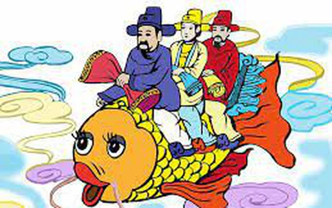 Ngày xưa, có một gia đình nọ sinh được 2 cô con gái. Người con gái út vốn giàu lòng thương người, thậm chí còn yêu thương cả 3 ông Táo đã nuôi trong nhà, đặc biệt là ông Táo già. Ông thường hiện lên trò chuyện với hai chị em. Biết ông cần cá chép để cưỡi về trời mỗi dịp 23 Tết âm lịch, 2 chị em lại tặng ông con cá chép, bỏ vào bếp để ông bay về trời.
